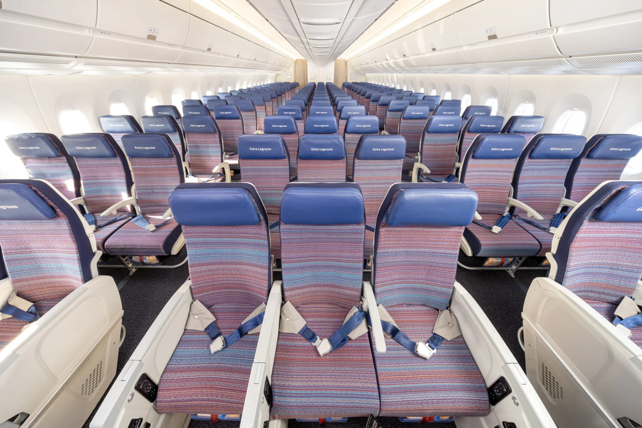 The Korean Air A350-900 is equipped with 311 seats in total in a two-class configuration. There are 28 business “Prestige Suites” seats and 283 economy ones. In the Prestige front of the aircraft, fully-flat bed convertible Stelia Solstys III seats will be found arranged in a 1-2-1 configuration, also featuring an adjustable headrest and an 18” HD touchscreen display. For Economy class, the airline went with Safran Z300 seats in a 3-3-3 configuration featuring a four-way adjustable headrest and an 11.1” HD touchscreen display.
